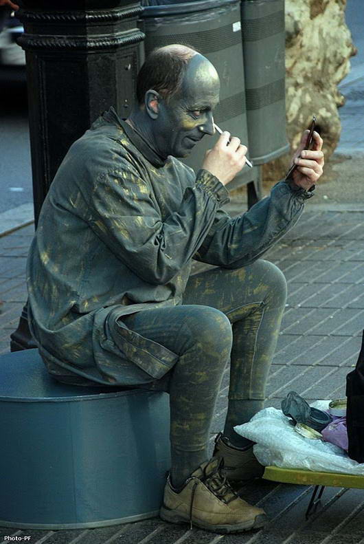 Berjalan menyusuri jalan utama Barcelona dapat kita temui sejumlah artis jalanan yang menyamar sebagai 'patung manusia'. fitur- fitur ini adalah kreasi seniman jalanan imajinatif yang mereka bisa, dari figur selebriti dan makhluk mitologis sampai karakter imajiner. Mereka juga membawa di depannya kotak-kotak kecil, turis - turis yang lewat banyak yang berfoto bersama mereka, dan tak lupa anda bisa meminta pose yang sesuai kepada sang patung hidup dengan yang anda inginkan.